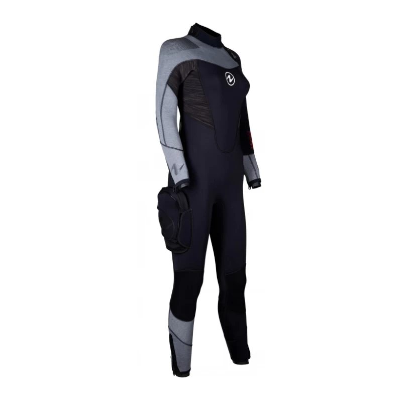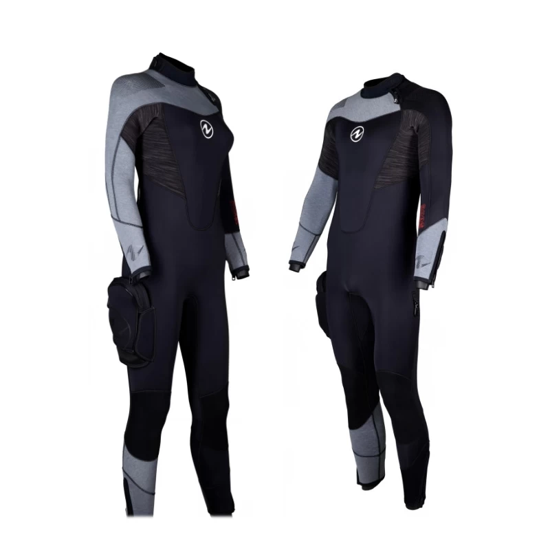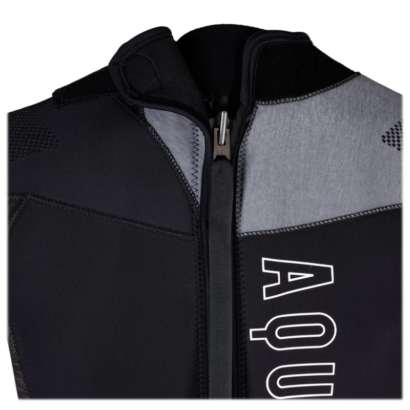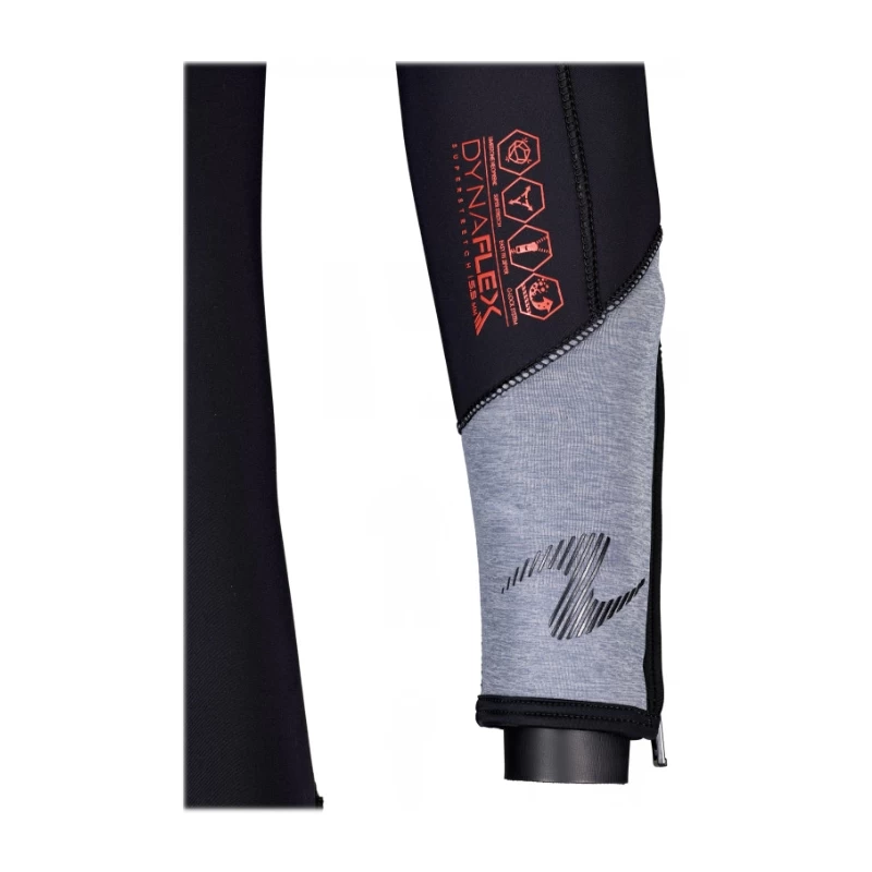 - Fermeture à glissière à l’avant du col avec gousset soudé pour un confort accru avant ou après la plongée