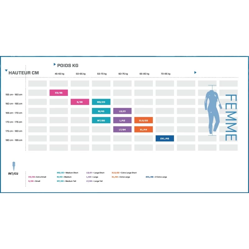 - Des passants pour pieds empêchent la combinaison de remonter lorsqu’elle est portée sous une combinaison humide.
