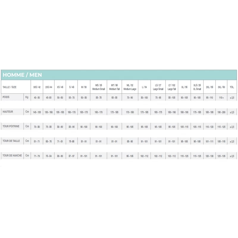 | Taille | XS, S, M, ML, L, XL, XXL, XXXL, MT, LS, LT, MLT, MS, MLS |